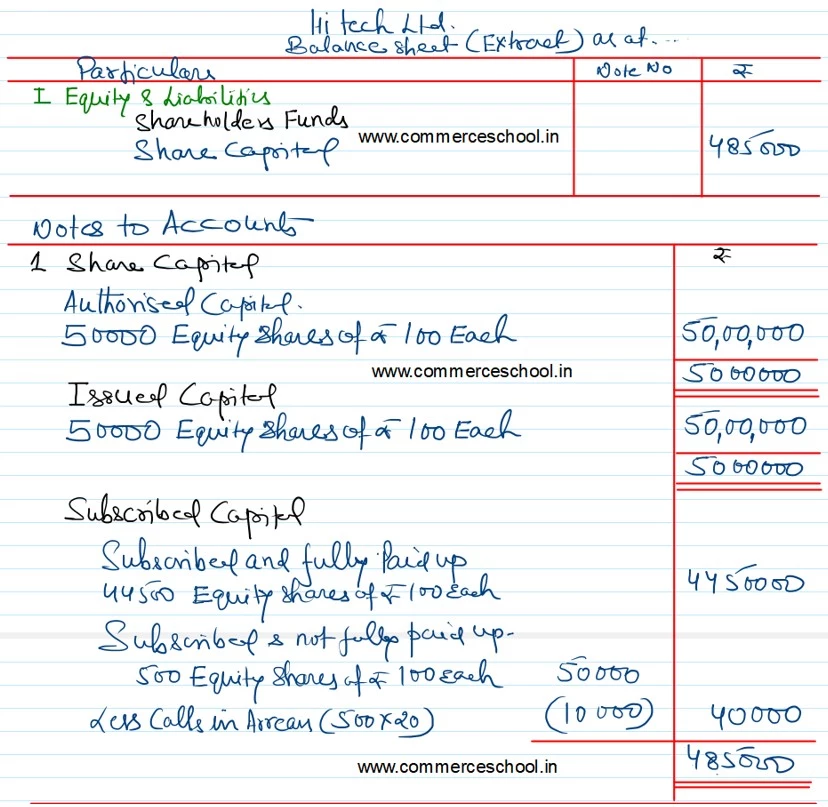 Prepare the Balance Sheet of the company showing the Share Capital.