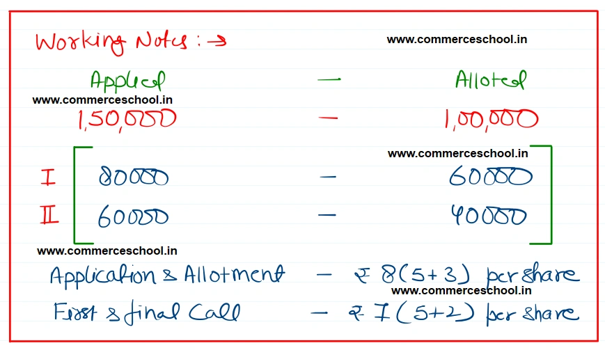 Applications for 1,50,000 shares were received. Applications for 10,000 shares were rejected, and pro rata allotment was made to the remaining applicants on the following basis: