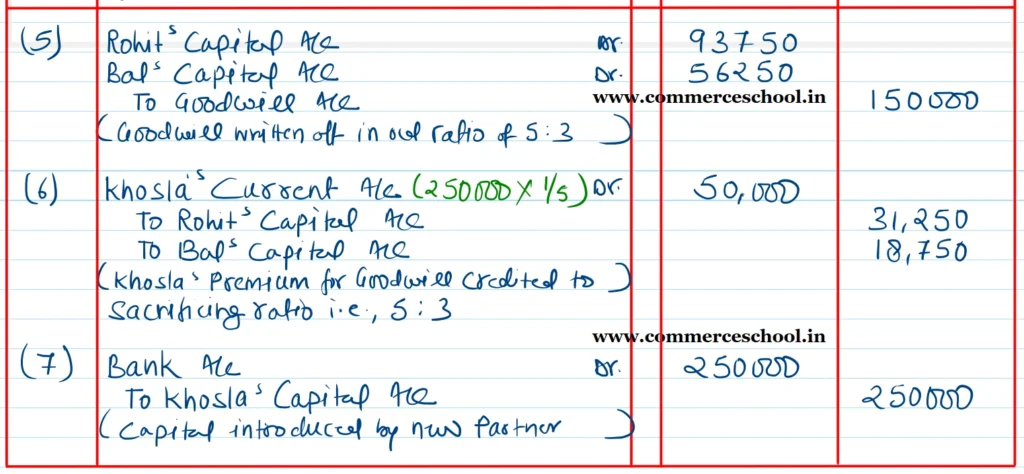 (1) If the premium for goodwill brought in cash is not mentioned then it is assumed that the new partners do not bring a premium for goodwill in cash. Thus, it is adjusted through the new partner’s current Account.