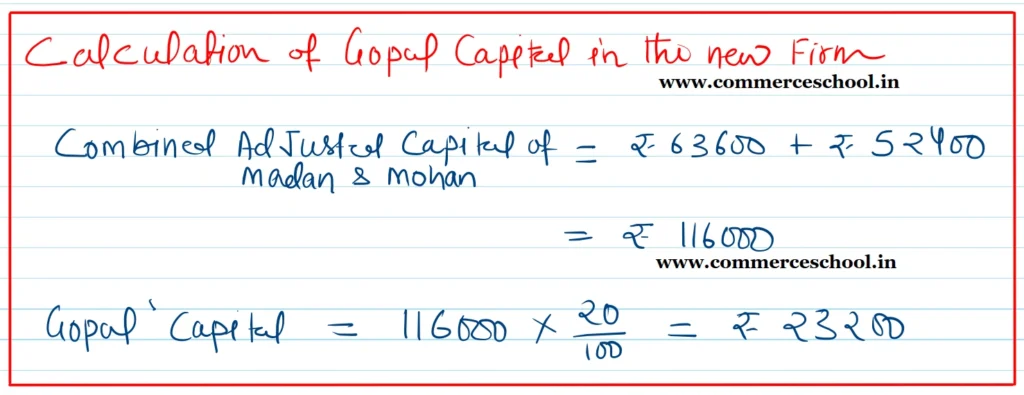 (v) Gopal was to bring in capital equal to 20% of the combined capitals of Madan and Mohan after all adjustments.
