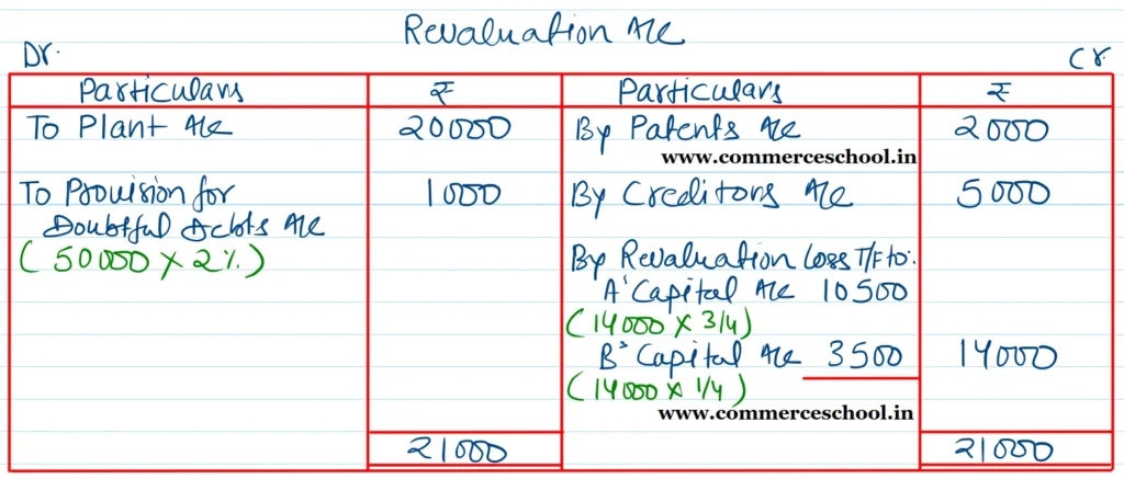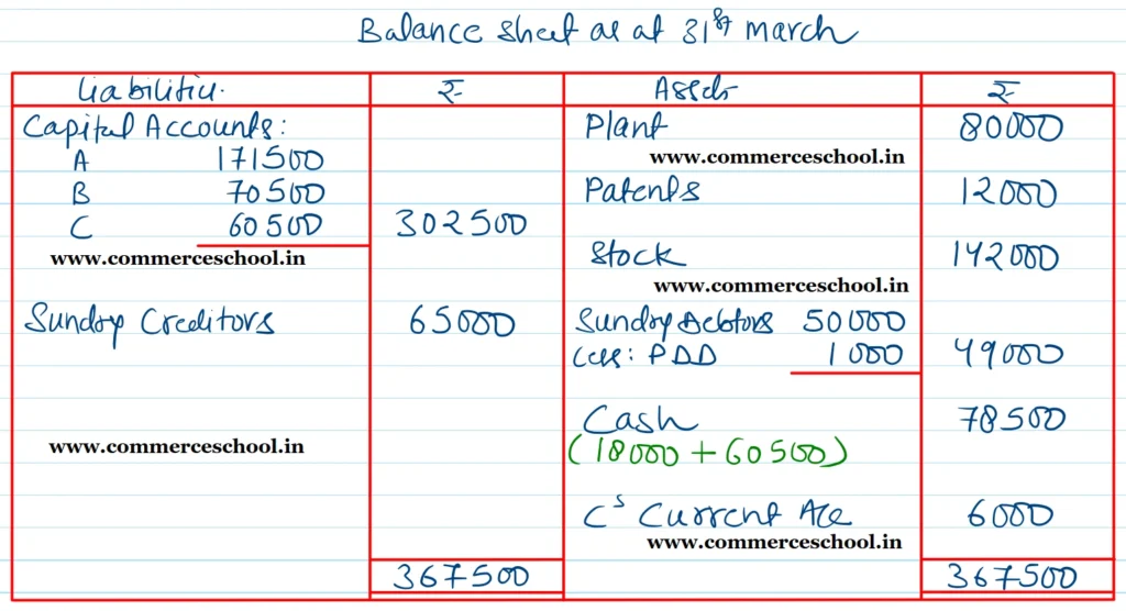 (3) Plant is to be written down to ₹ 80,000 and Patents written up to ₹ 12,000. A provision of 2% on debtors is required. A liability of ₹ 5,000 included in Sundry Creditors is not likely to arise.