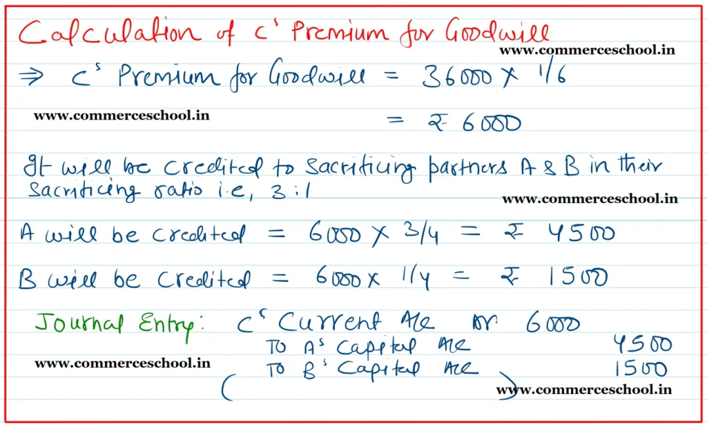 They admit C into partnership with 1/6th share in profits upon the following terms:
