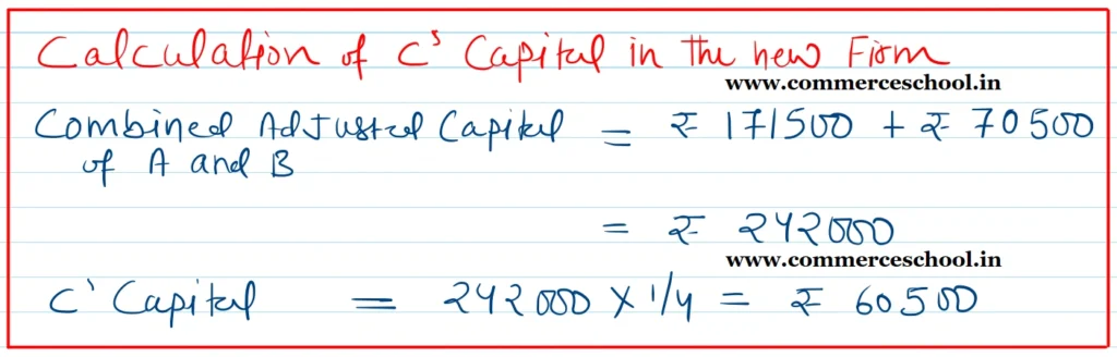 (2) C agrees to contribute 1/4 of the combined capital of A and B in the new firm.