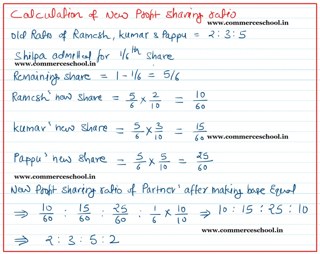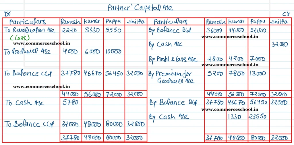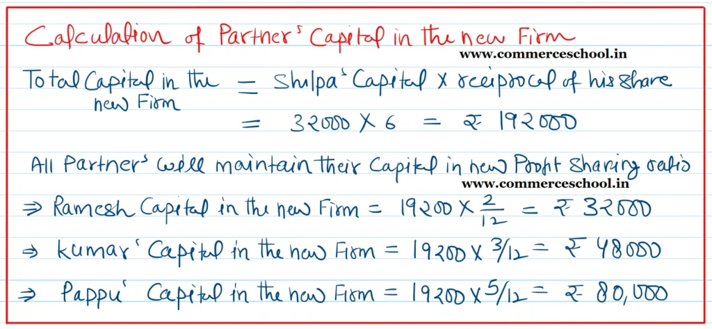 (4) Shilpa to bring ₹ 32,000 towards capital for 1/6th share and old partners to adjust their capitals accordingly.