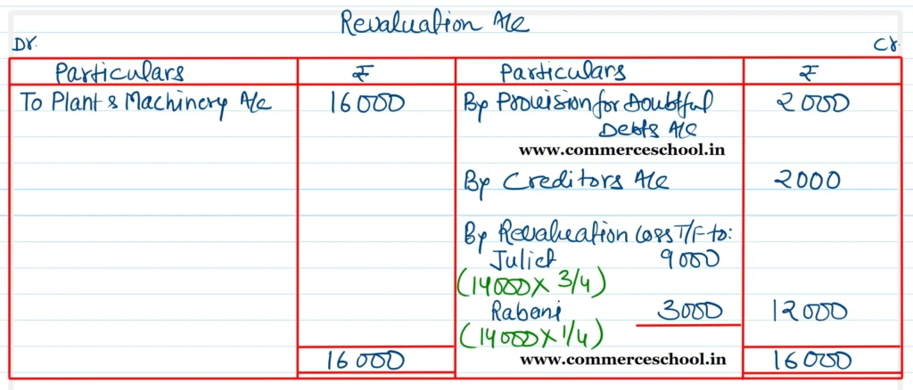 (a) Plant and Machinery was found to be overvalued by ₹ 16,000. It was to be shown in the books at the correct value.