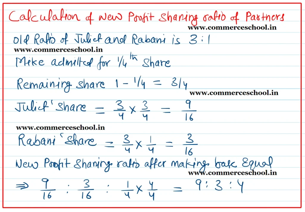 Mike was taken as a partner for 1/4th share, with effect from 1st April, 2016, subject to the following adjustments: