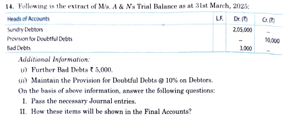 Following is the extract of M/s. A & N’s Triall Balance as at 31st March, 2025: