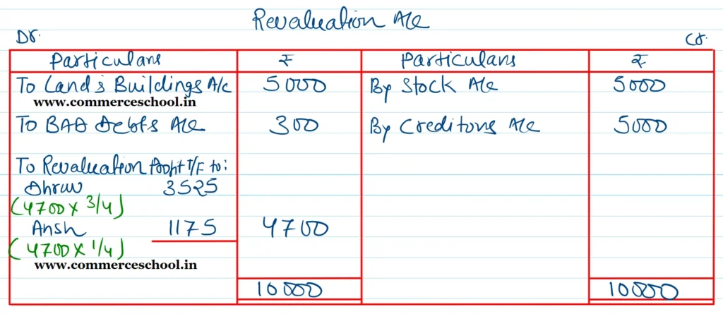 [Ans.: Gain on Revaluation ₹ 4,700; Capital A/cs: Dhruv ₹ 46,275; Ansh ₹ 25,425 and Kavi ₹ 17,925; B/S Total ₹ 1,26,625.]