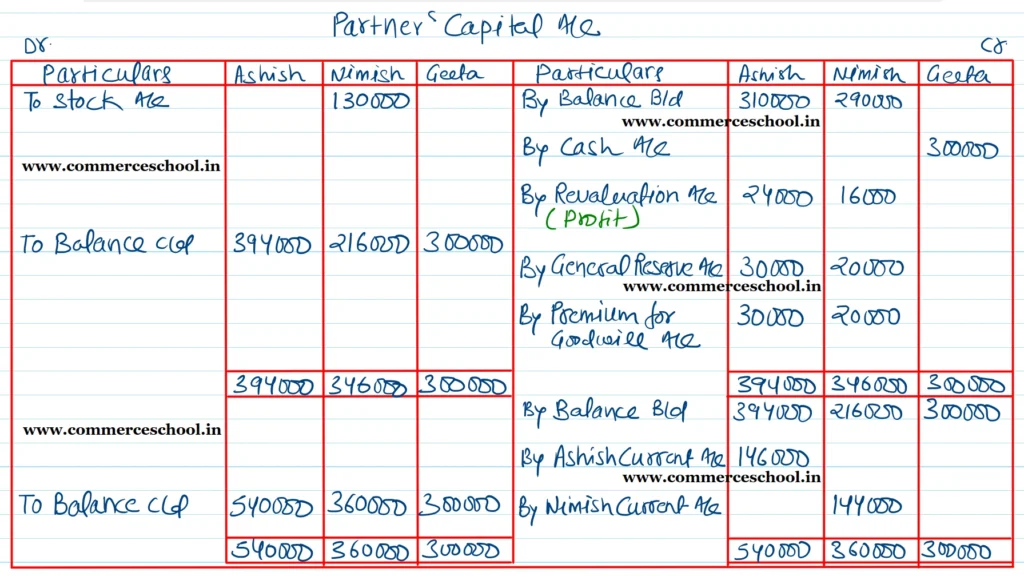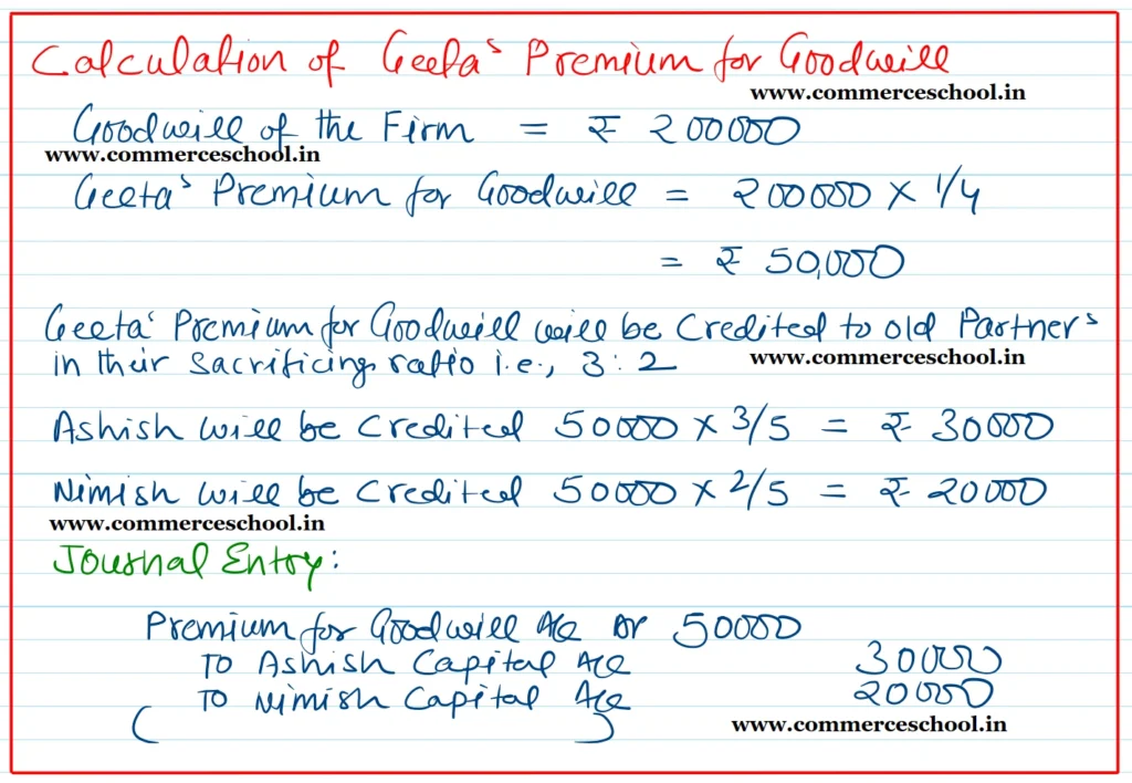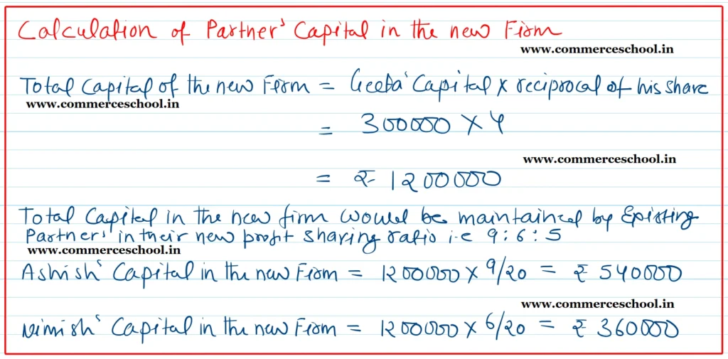 (ii) Geeta brought ₹ 3,00,000 as her capital and her share of goodwill premium in cash.