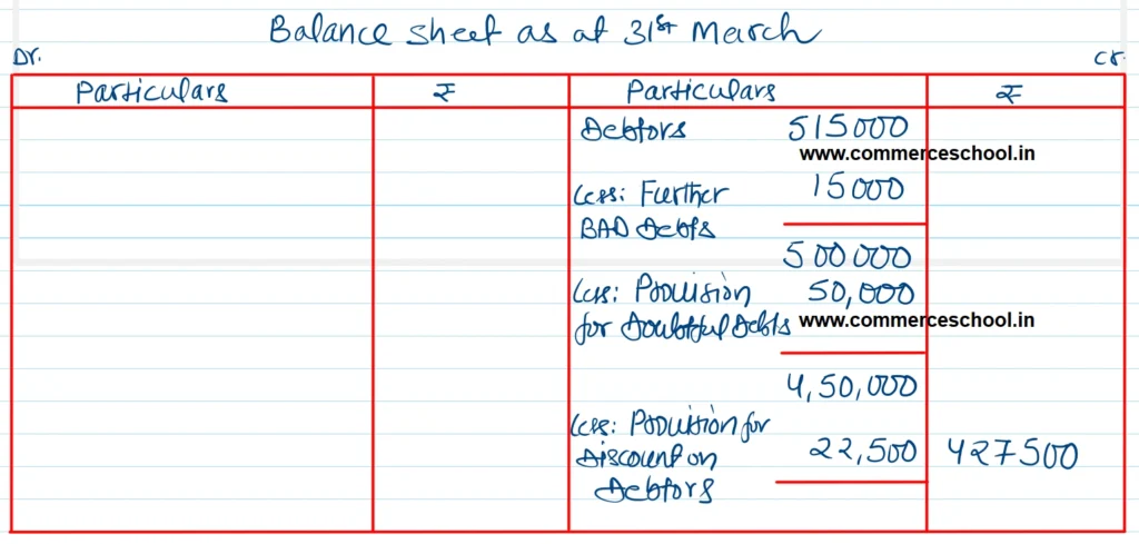 (iii) Create Provision for Discount on Debtors @ 5% on Debtors.
