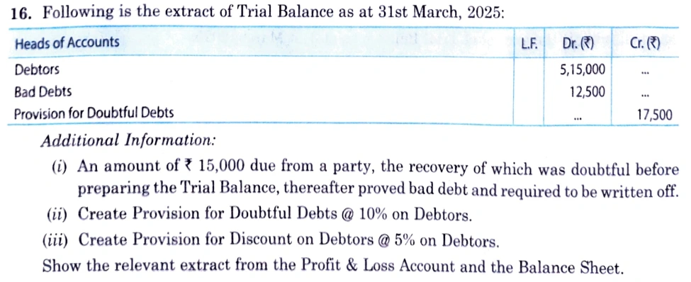 Solution of Question number 16 of the Adjustments in Preparation of Financial Statements of TS Grewal Book class 11, 2025-26?