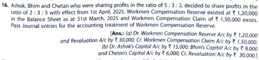 Solution to Question number 16 of the Change in Profit Sharing Ratio chapter 4 of TS Grewal Book class 12 CBSE 2025-26 Edition.