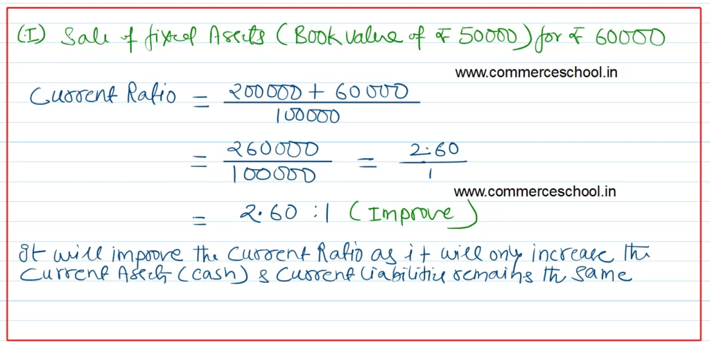 (i) Sale of Fixed Assets (Book Value of ₹ 50,000) for ₹ 60,000.