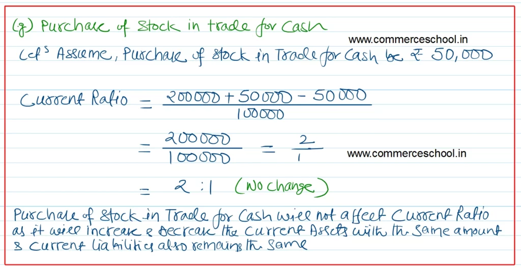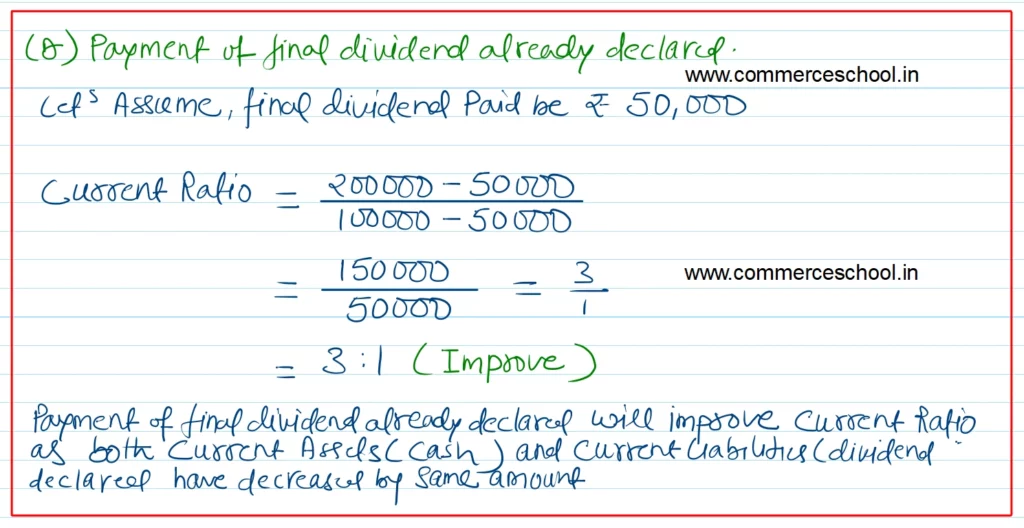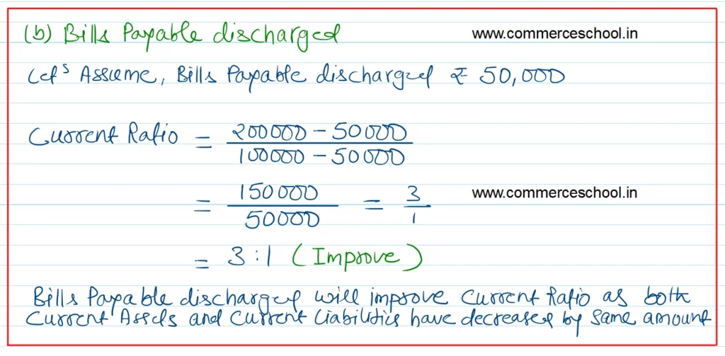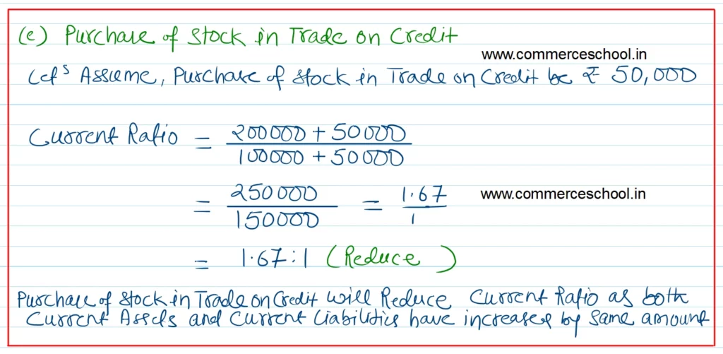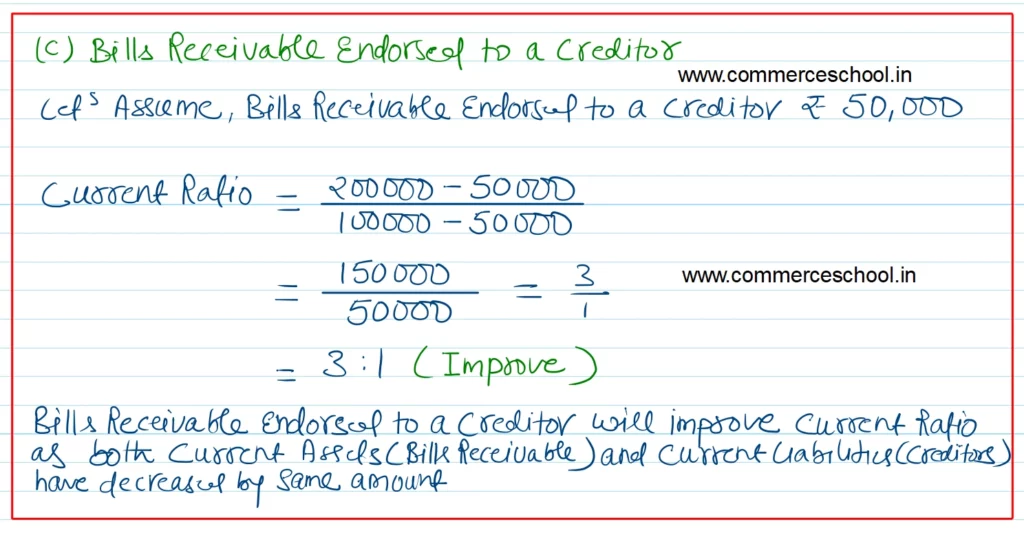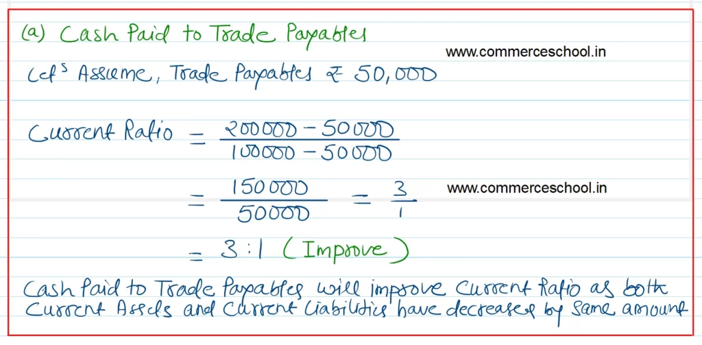 State, giving reason, whether the Current Ratio will improve or decline or will have no effect in each of the following transactions if Current Ratio is 2 : 1.