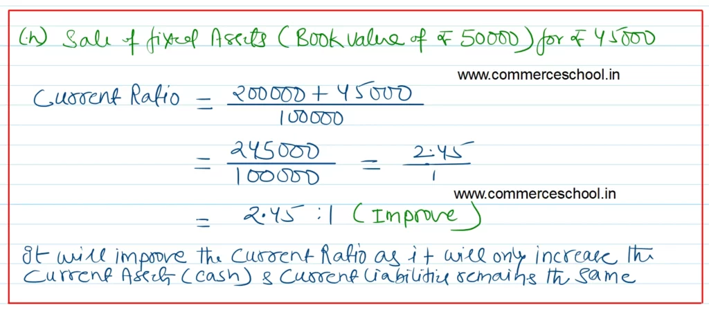(h) Sale of Fixed Assets (Book Value of ₹ 50,000) for ₹ 45,000.