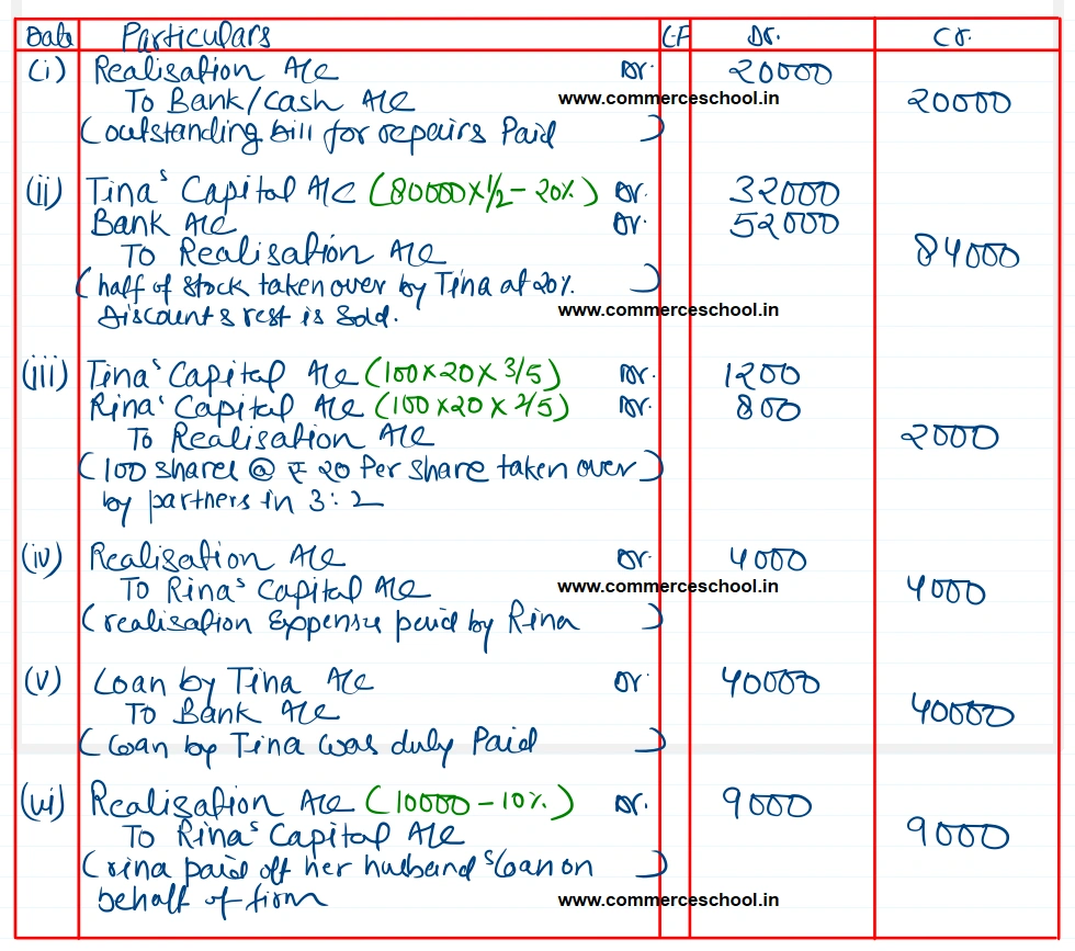 (iv) Realisation expneses of ₹ 4,000 were paid by Rina.