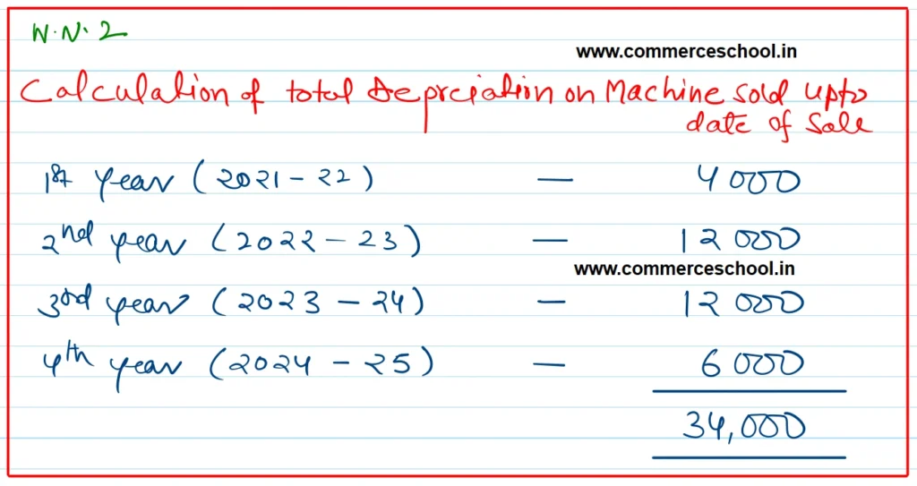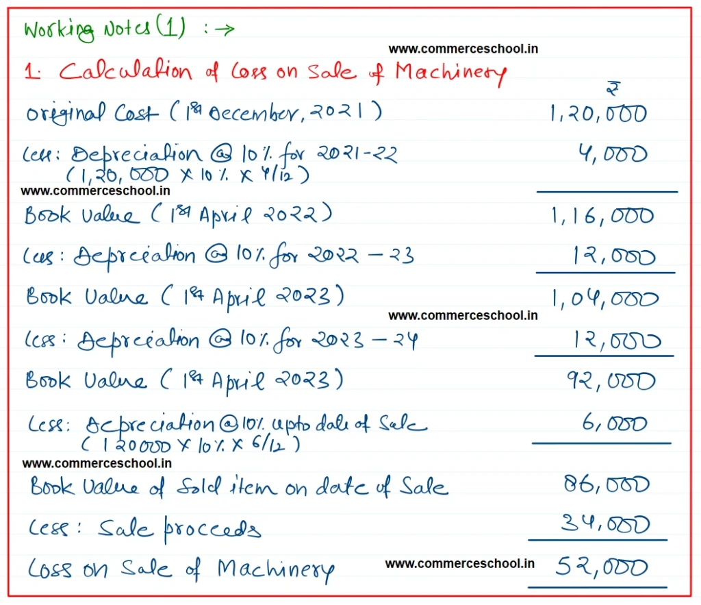 On 1st April, 2024, they decided to sell a machine for ₹ 8,700. This machine was purchased for ₹ 16,000 in April, 2020.