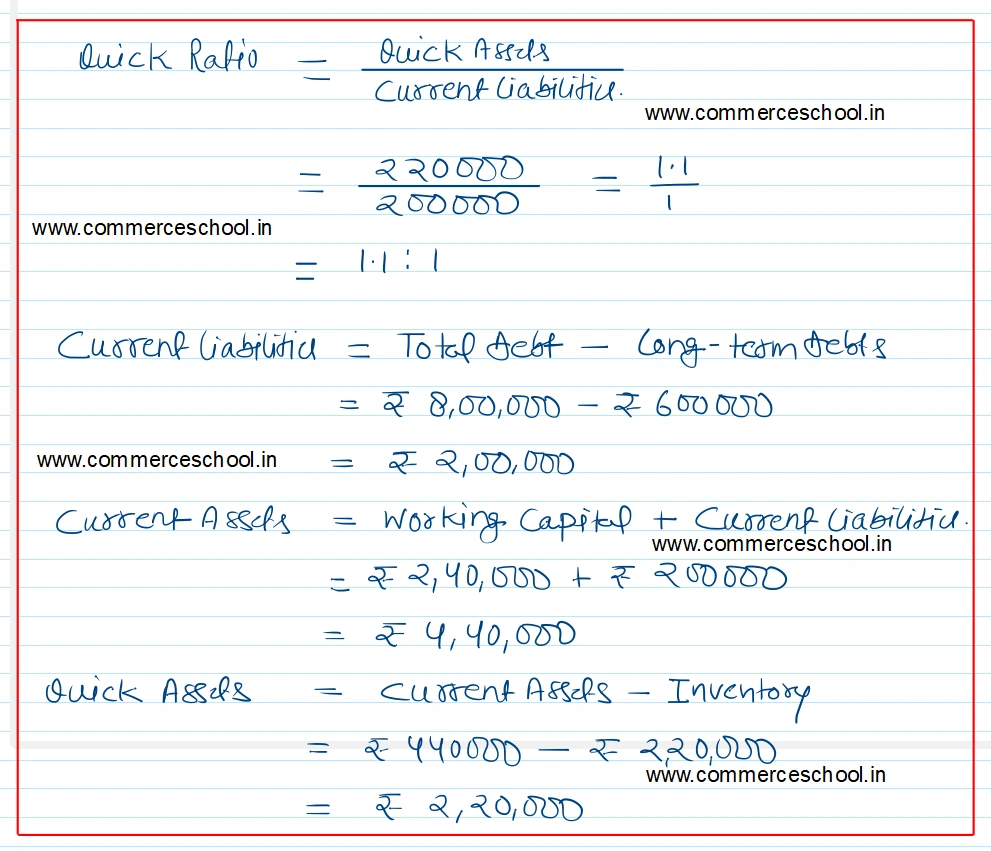[Ans.: Quick Ratio = 1.1 : 1; Debt-Equity Ratio = 0.5 : 1.]