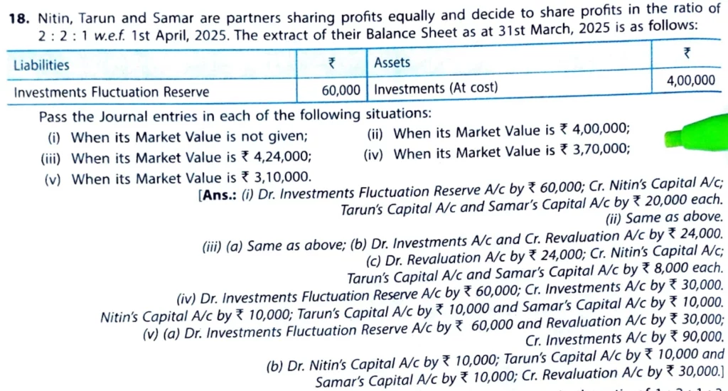 Solution to Question number 18 of the Change in Profit Sharing Ratio chapter 4 of TS Grewal Book class 12 CBSE 2025-26 Edition.