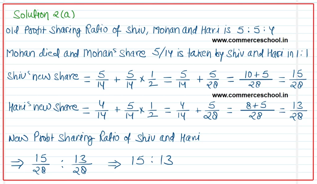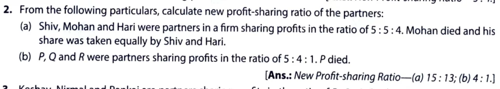 (a) Shiv, Mohan and Hari were partners in a firm sharing profits in the ratio of 5 : 5 : 4. Mohan died and his share was taken equally by Shiv and Hari.