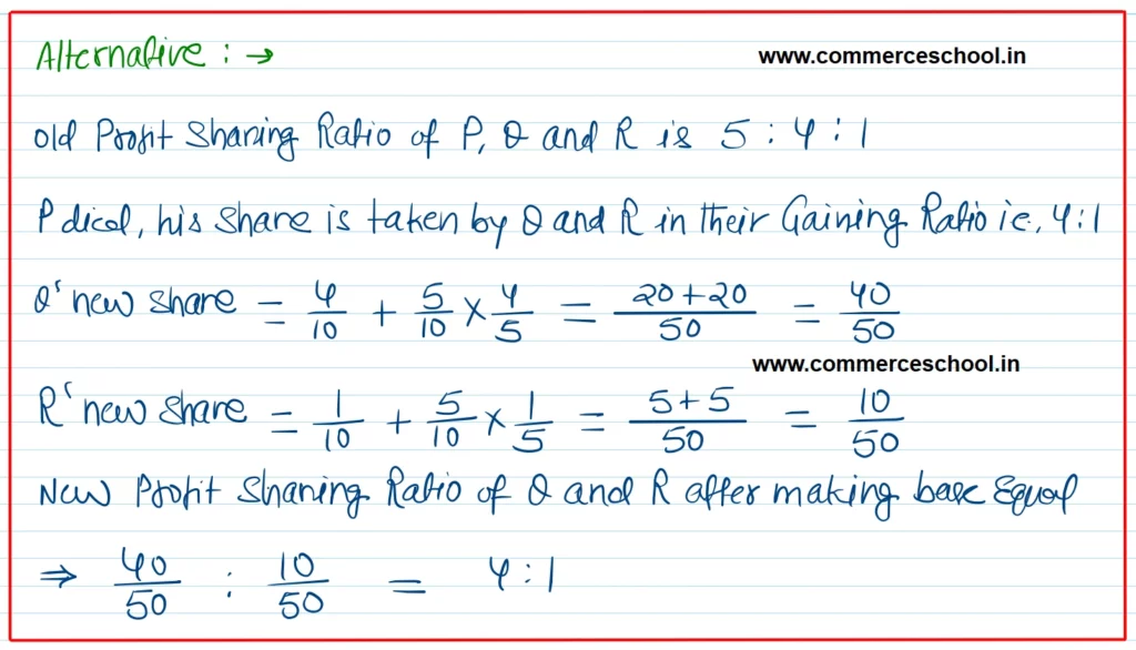 (b) P, Q and R were partners sharing profits in the ratio of 5 : 4 : 1. P died.
