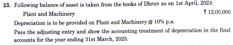 Pass the adjusting entry and show the accounting treatment of depreciation in the final accounts for the year ending 31st March, 2025.