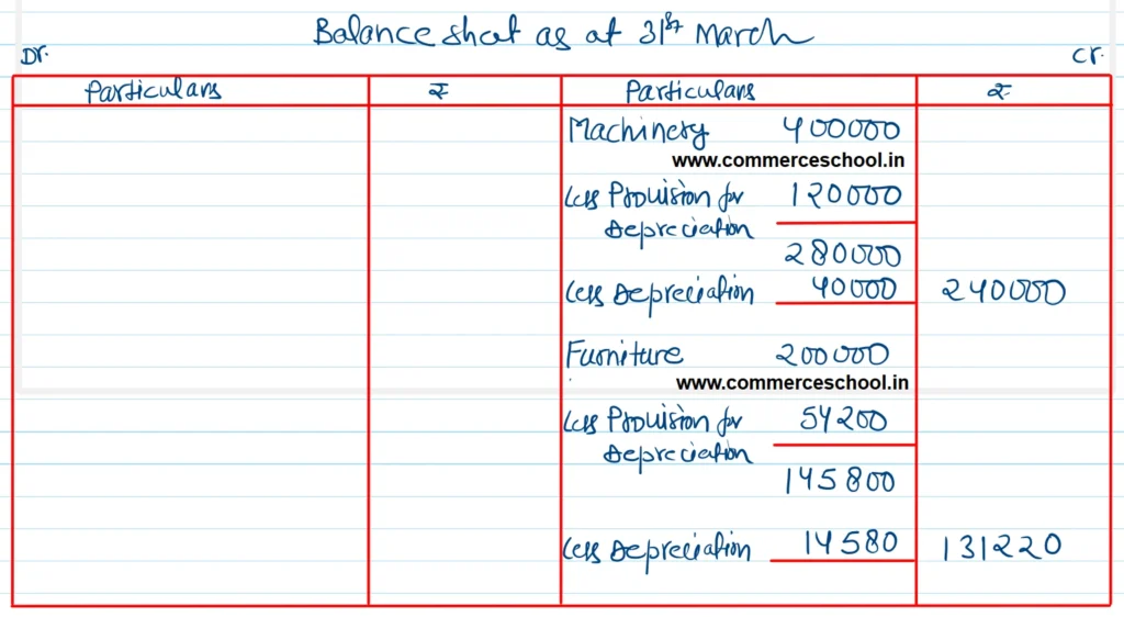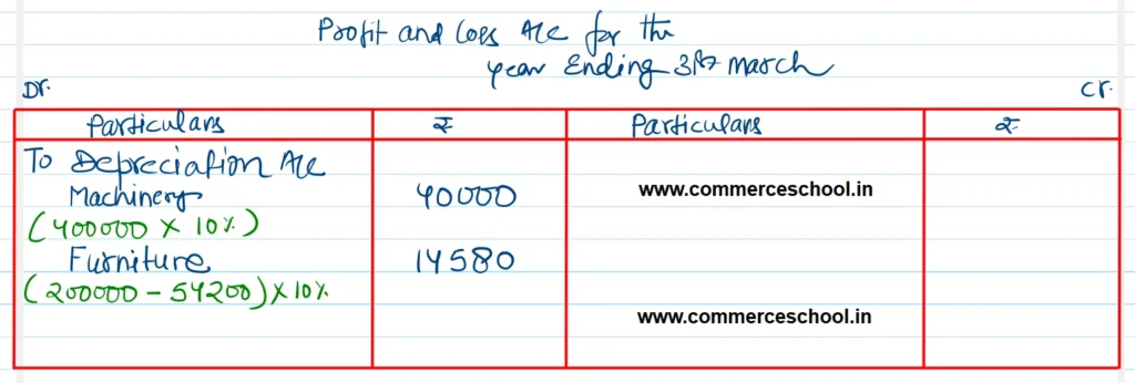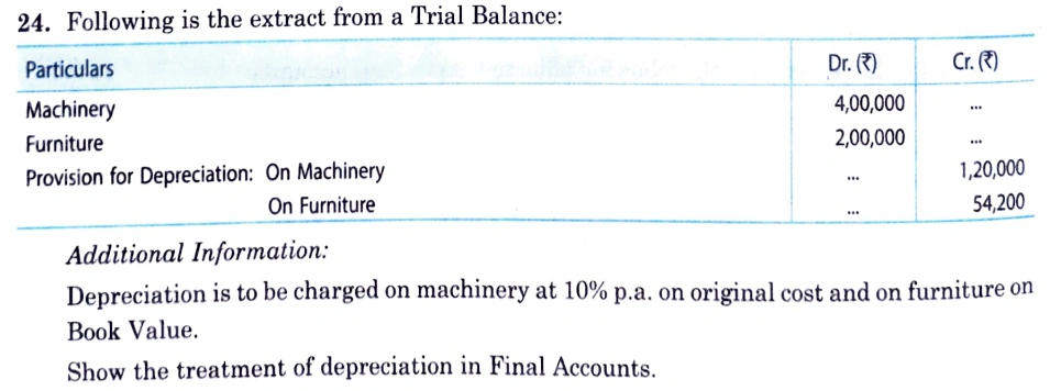 Depreciation is to be charged on machinery at 10% p.a. on original cost and on furniture on Book Value.