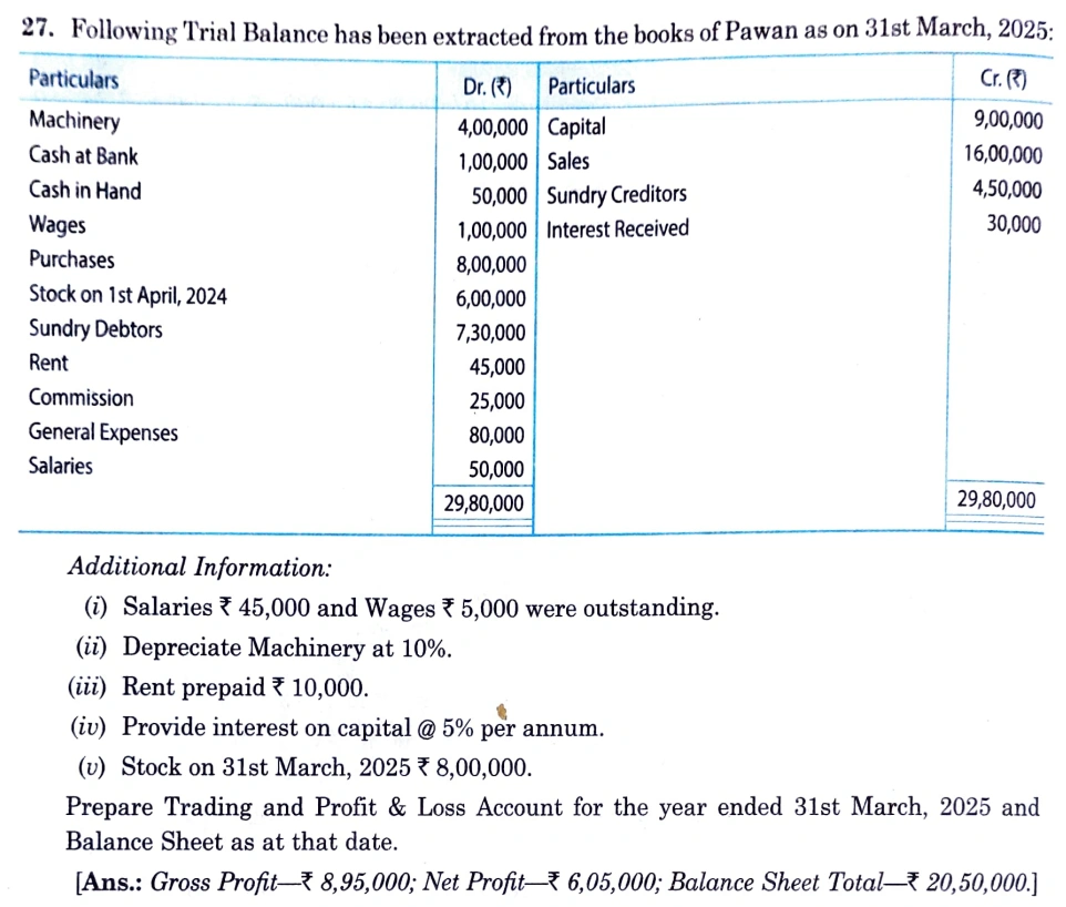 Solution of Question number 27 of the Adjustments in Preparation of Financial Statements of TS Grewal Book class 11, 2025-26?