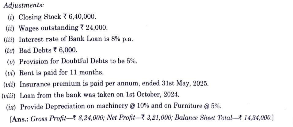 [Ans.: Gross Profit – ₹ 8,24,000; Net Profit – ₹ 3,21,000; Balance Sheet Total – ₹ 14,34,000.]