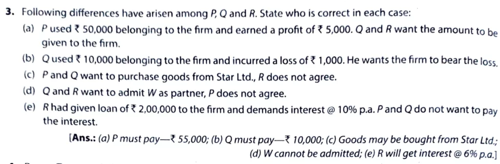 Solution of Question number 3 of the Fundamentals of Partnership Firm chapter TS Grewal Book CBSE 2025-26 Edition?