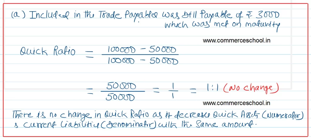 (a) Included in the trade payables was bill payable of ₹ 3,000 which was met on maturity;