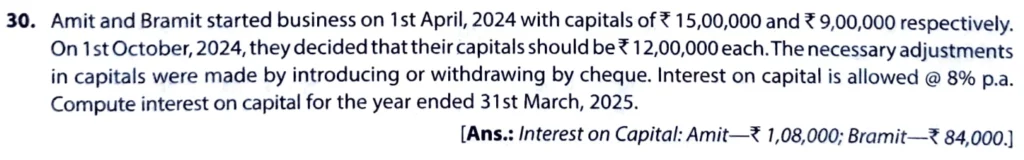 [Ans: Interest on capital: Amit – ₹ 1,08,000; Bramit – ₹ 84,000.]