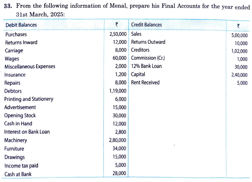 Solution of Question number 33 of the Adjustments in Preparation of Financial Statements of TS Grewal Book class 11, 2025-26?