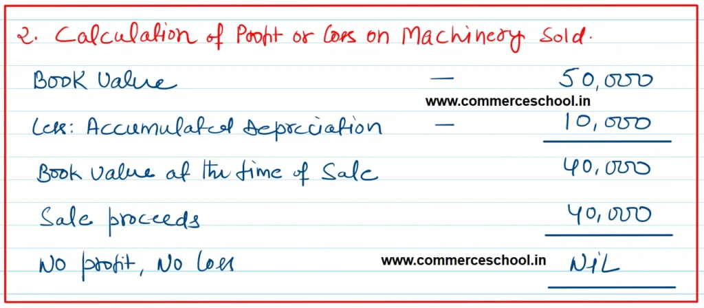 [Neither Gain (Profit) nor loss on Sale of Machine; Balance of Machinery a/c (31set March, 2023) – ₹ 1,50,000; Balance of Accumulated Depreciation A/c (31st March, 2023) ₹ 45,000.]