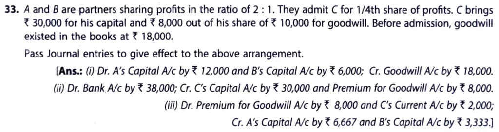 Solution to Question number 33 of the Admission of Partner chapter 5 of TS Grewal Book 2025-26 Edition CBSE Board?