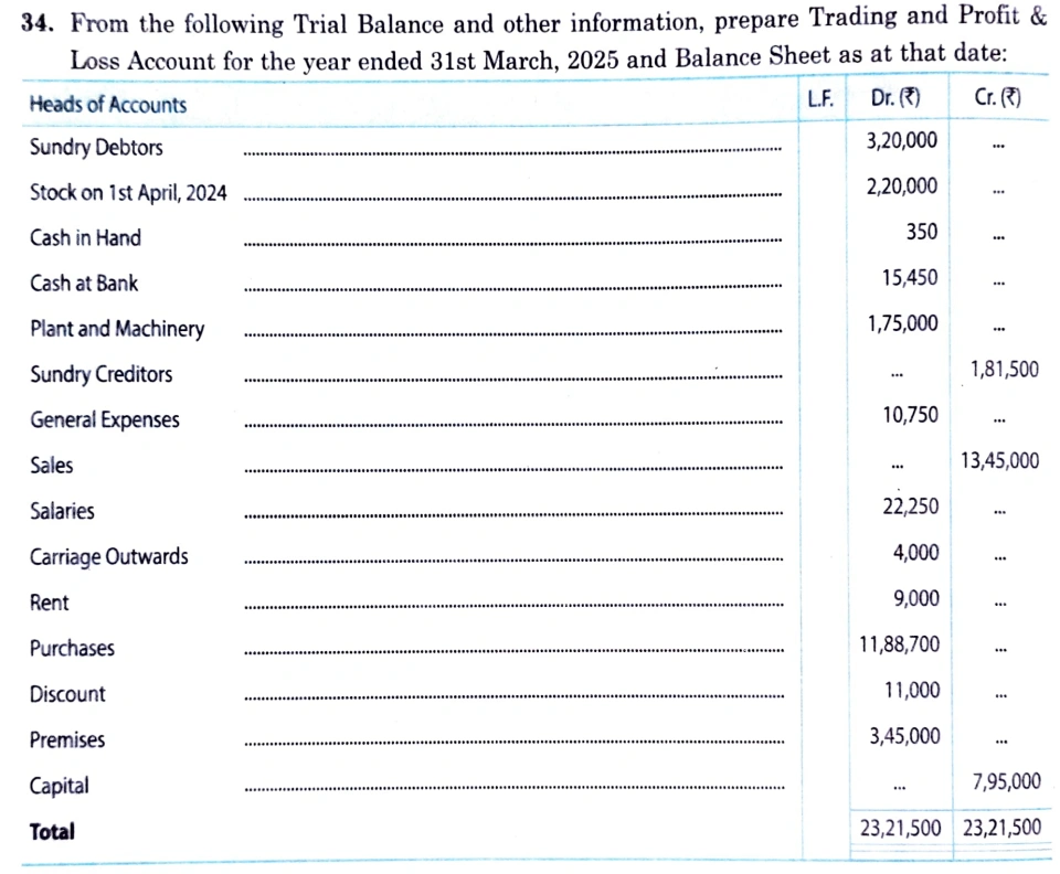 Solution of Question number 34 of the Adjustments in Preparation of Financial Statements of TS Grewal Book class 11, 2025-26?