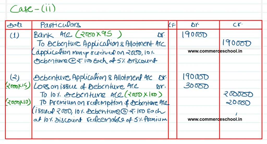 (b) When debentures were issued at 5% discount, redeemable at 10% premium.