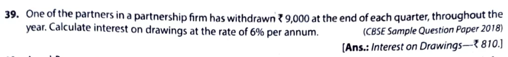 One of the partners in a partnership firm has withdrawn ₹ 9,000 at the end of each quarter, throughout the year. Calculate interest on drawings at the rate of 6% per annum.