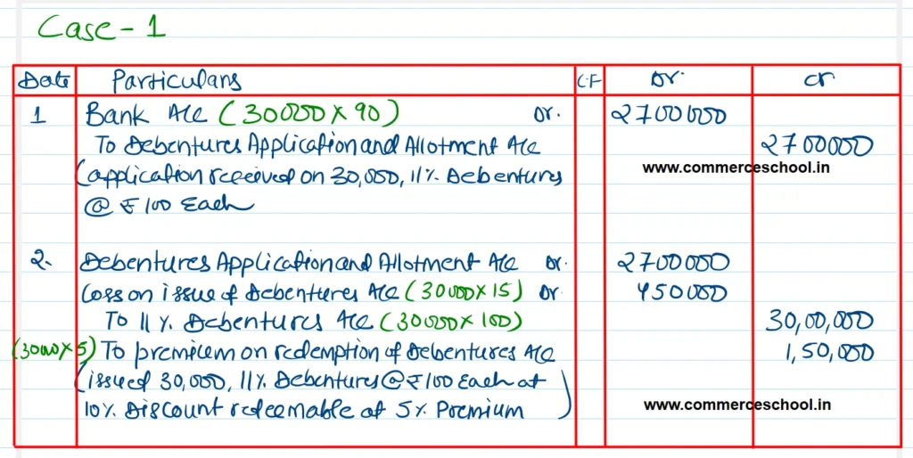 Pass necessary Journal entries for the issue of debentures for the following transactions: