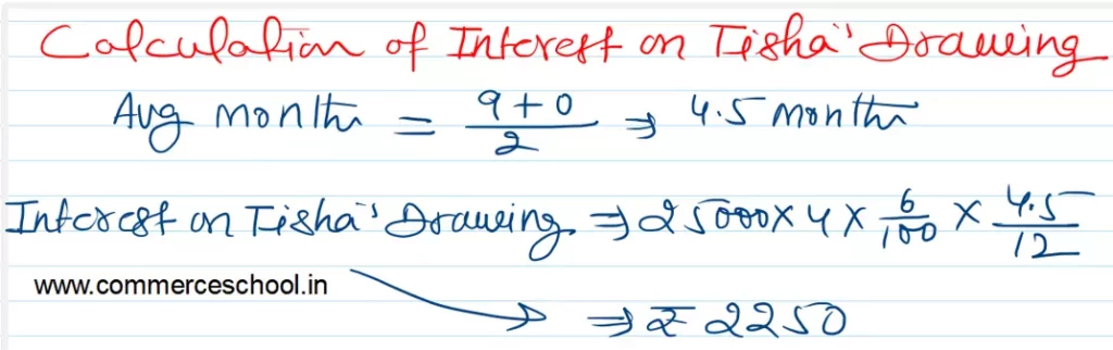 i) Tisha withdrew ₹ 25,000 at the end of each quarter