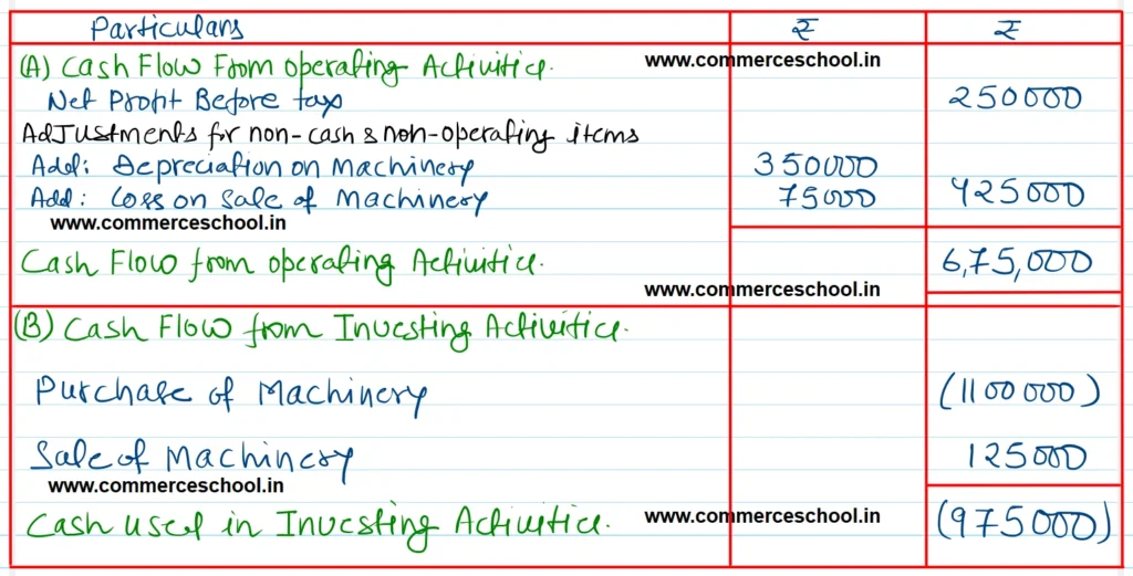 [Ans.: Operating Profit before Working Capital Change = ₹ 6,75,000; Cash used in Investing Activities = ₹ 9,75,000.]