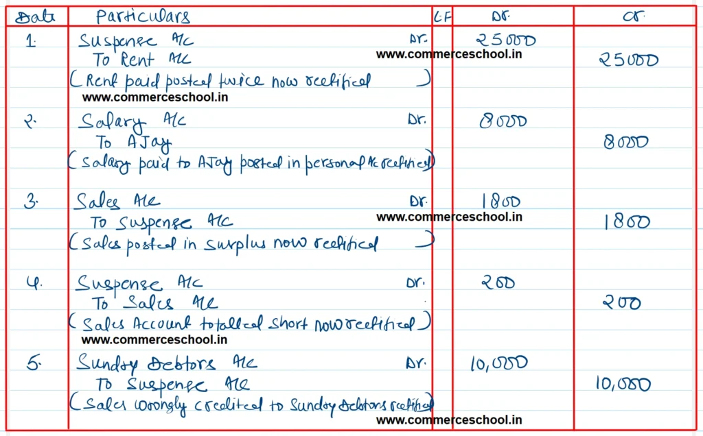 [Ans.: Entry (v): Dr. Sundry Debtors A/c and Cr. Suspense A/c by ₹ 10,000.]