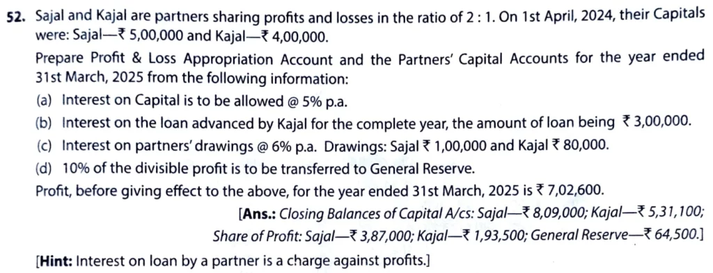 Solution of Question number 52 of the Fundamentals of partnership firm chapter TS Grewal Book CBSE 2025-26 Edition