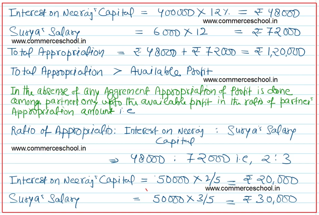 [Ans. Neeraj will get ₹ 20,000 as interest on capital and Surya will get as ₹ 30,000 as salary.]