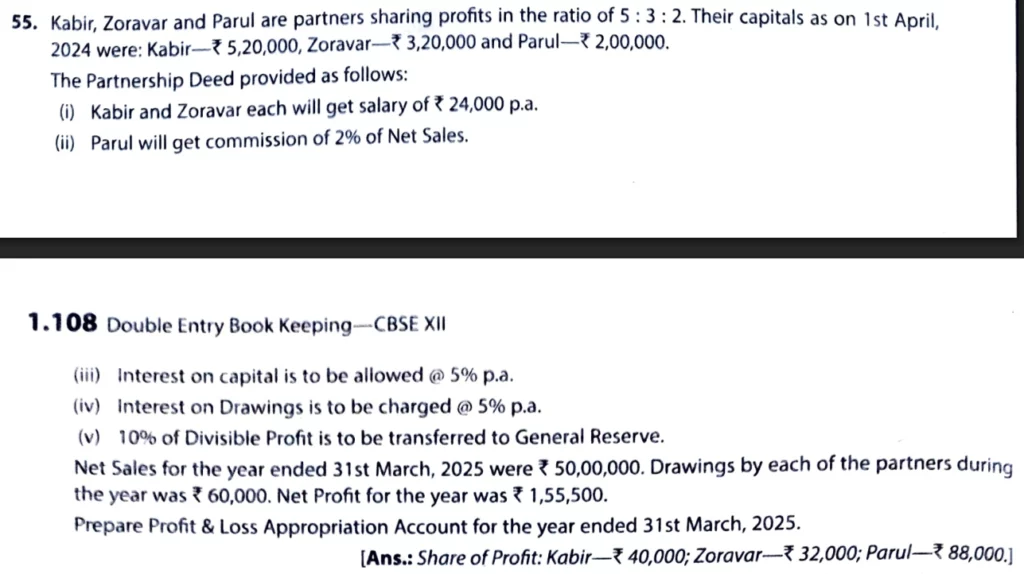 Solution of Question number 55 of the Fundamentals of partnership firm chapter TS Grewal Book CBSE 2025-26 Edition