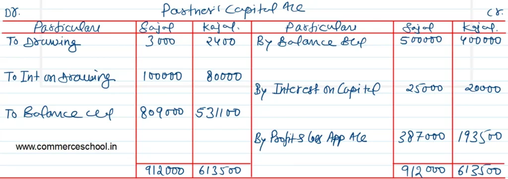 (c) Interest on partner’s drawings @ 6% p.a. Drawings: Sajal ₹ 1,00,000 and Kajal ₹ 80,000.