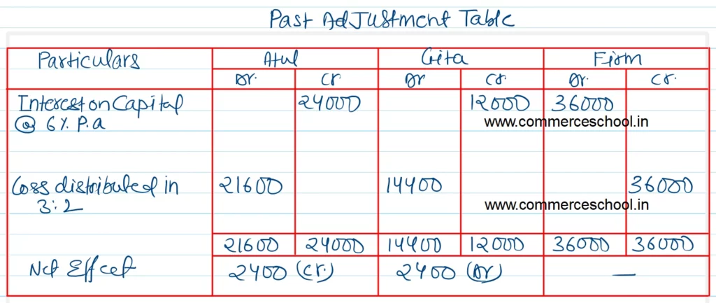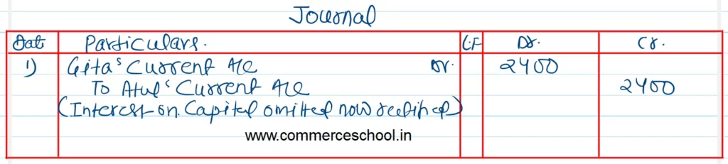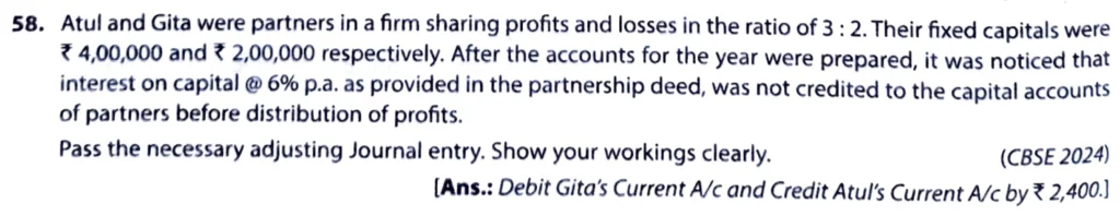 Atul and Gita were partners in a firm sharing profits and losses in the ratio of 3 : 2. Their fixed capitals were ₹ 4,00,000 and ₹ 2,00,000 respectively. After the accounts for the year were prepared, it was notices that interest on capital @ 6% p.a. as provided in the partnership deed, was not credited to the capital account of partners before distribution of profits.