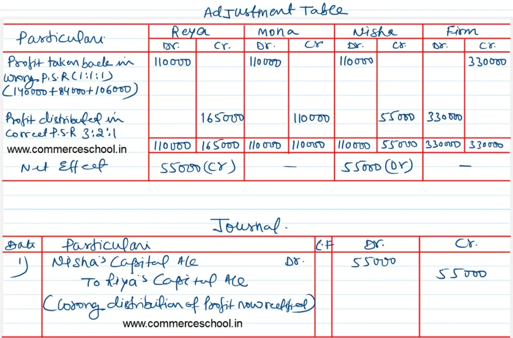 [Ans: Debit Nisha’s Capital A/c and Credit Reya’s Capital A/c by ₹ 55,000]