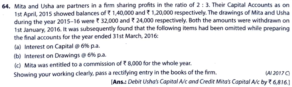 Solution of Question number 64 of the Fundamentals of partnership firm chapter TS Grewal Book CBSE 2025-26 Edition
