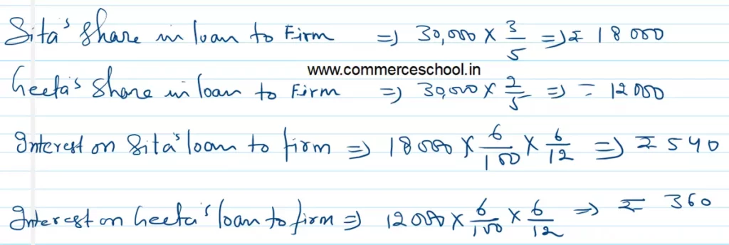 Sita and Geeta are partners in a firm sharing profits in the ratio of 3:2. They had given a loan to the firm of ₹ 30,000 in their profit sharing ratio on 1st October 2022. The partnership Deed is silent on interest on loans from partners. Compute interest payable by the firm to the partners, assuming the firm closes its books every year on 31st March.